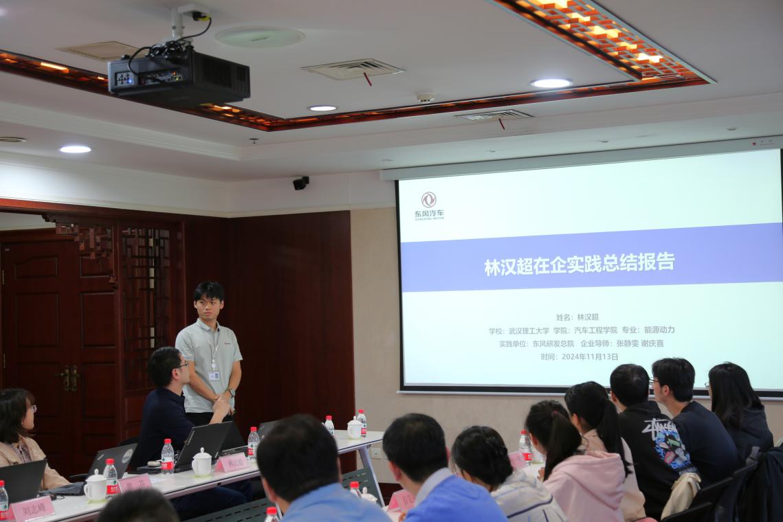 来自武汉理工大学的已参与入企实践员工、“东风跃迁班”学员代表林汉超为同学们分享入企后的科研经历、心得体会和收获成果。