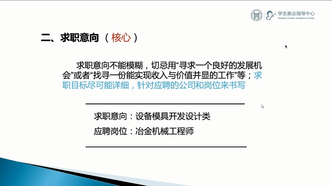 李婷强调求职意向作为简历的核心,不能模糊,要围绕意向岗位的能力要求撰写,主题明确,证据充分,条理清晰,重点突出。