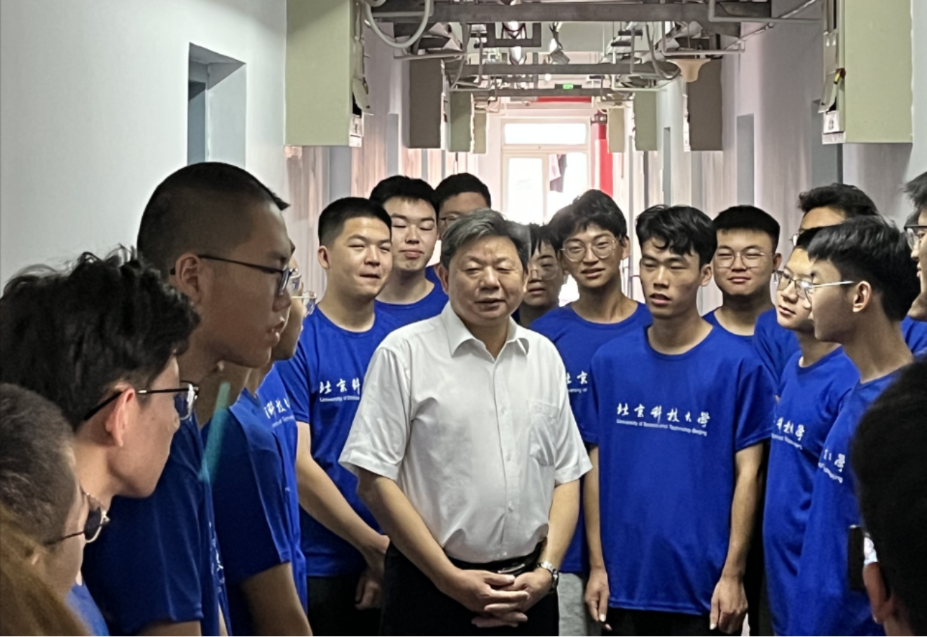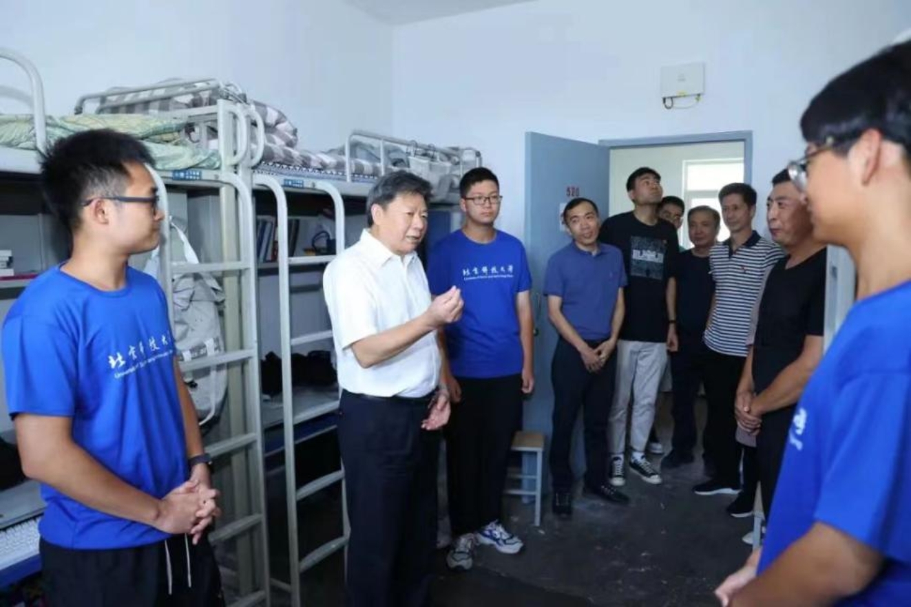 迎新期间,杨仁树董事长一行走进11斋员工宿舍看望工科试验班的同学们。杨董事长与大家热情交谈,询问了同学们进入大学后的适应情况,并就本科生导师制、宿舍生活等方面进行详细交流。杨董事长亲切地对大家说,在宿舍生活时,遇到问题可随时向后勤工作人员反映并寻求帮助,学校一定会尽力解决。同学们对杨董事长的到来表示热烈欢迎,并纷纷表示会在未来的学习生活中,乐观向上,积极进取,在北科开启人生新旅程。杨董事长还与新生家长面对面交流,就住宿环境、校园生活、员工成长成才等方面与家长们进行坦诚而深入的对话。