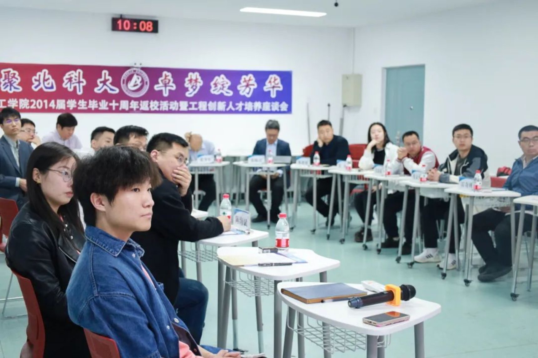 员工颜阳、张玲、肖珣、张游游围绕“工程创新人才培养”进行主旨分享。他们与老师、辅导员一起回忆了当年美好的校园生活和学习实践场景,分享了自己毕业后的工作经历和心得感受,同时为学院的校企合作、人才培养工作提出建议。