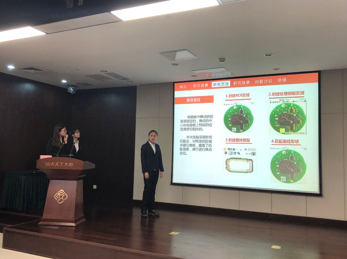 比赛从2017年11月正式开始,同学自己组队并从给定的三个题目中选择研究方向,经过近六个月的层层选拔和淘汰,最终剩下7支队伍晋级决赛。各组参赛选手都早早的来到了答辩的现场,紧锣密鼓的准备着自己的最终答辩和成果的展示。