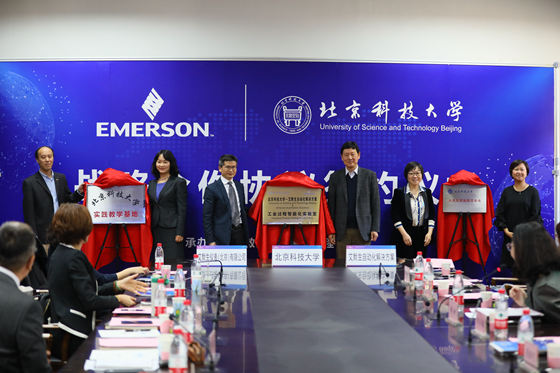 2018年开始,艾默生集团在北京科技大学设立“艾默生”STEM卓越班集体奖学金和“艾默生”卓越女性未来工程师奖学金,对优秀集体和员工进行奖励,弘扬“责任、创新、协同”的中国工程师精神。校企共建行业领先的工业过程智能化实验室,搭建了完整的数字化工厂架构平台,实现智能制造理念,共同为高等工程教育新工科建设和交叉学科人才培养贡献力量。