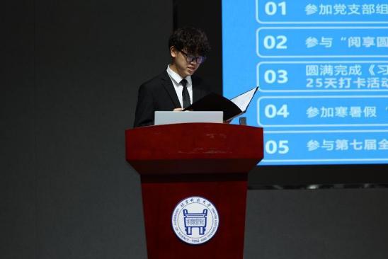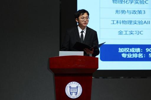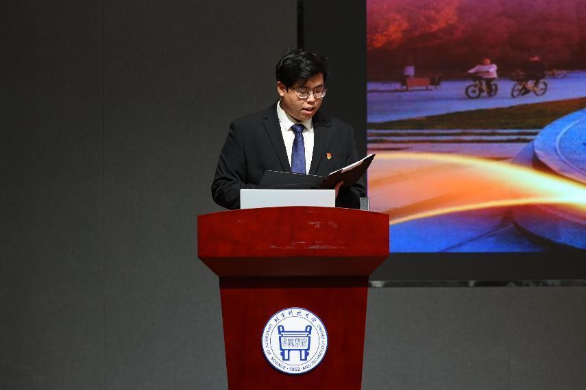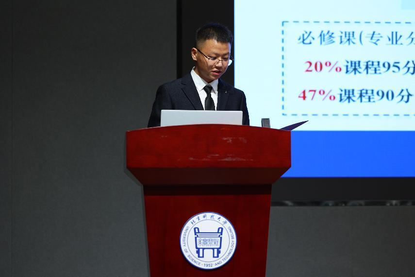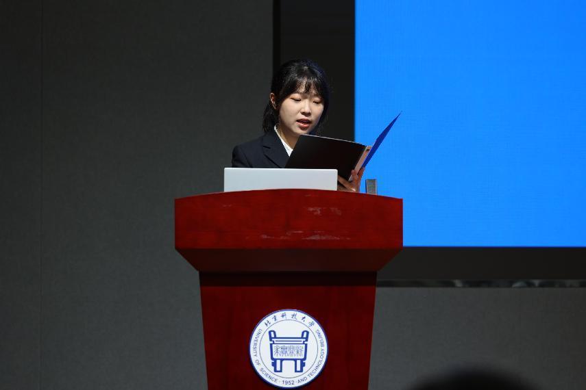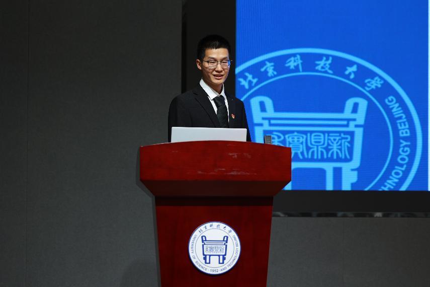 在答辩正式开始前,由北京科技大学2023-2024学年宝钢奖学金获得者、高工2021级刘鹏同学上台进行风采展示,为学弟学妹们大学的学习生活提供了宝贵经验。