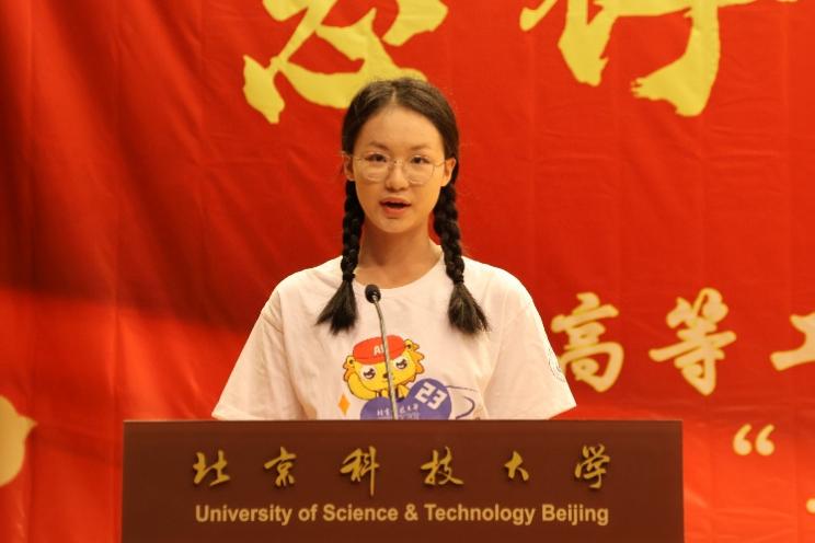 高工2305班余照仪同学作为新生代表发言。她分享了来到高工半个月以来自己的感受:处处的温暖揭开大学的模样,倾情的分享帮助学习的接轨,琐碎的事情助力能力的增长。她也对未来的老员工活进行了自我要求与展望期待。她提到要做到保持初心,适应老员工活;自主学习,安排学业规划;迎接挑战,把握多样机遇;团队合作,拥有家国情怀。最后,她更加坚定地提出对于未来自己老员工活的目标:为成为具有为国奉献钢筋铁骨的高素质人才不懈奋斗。