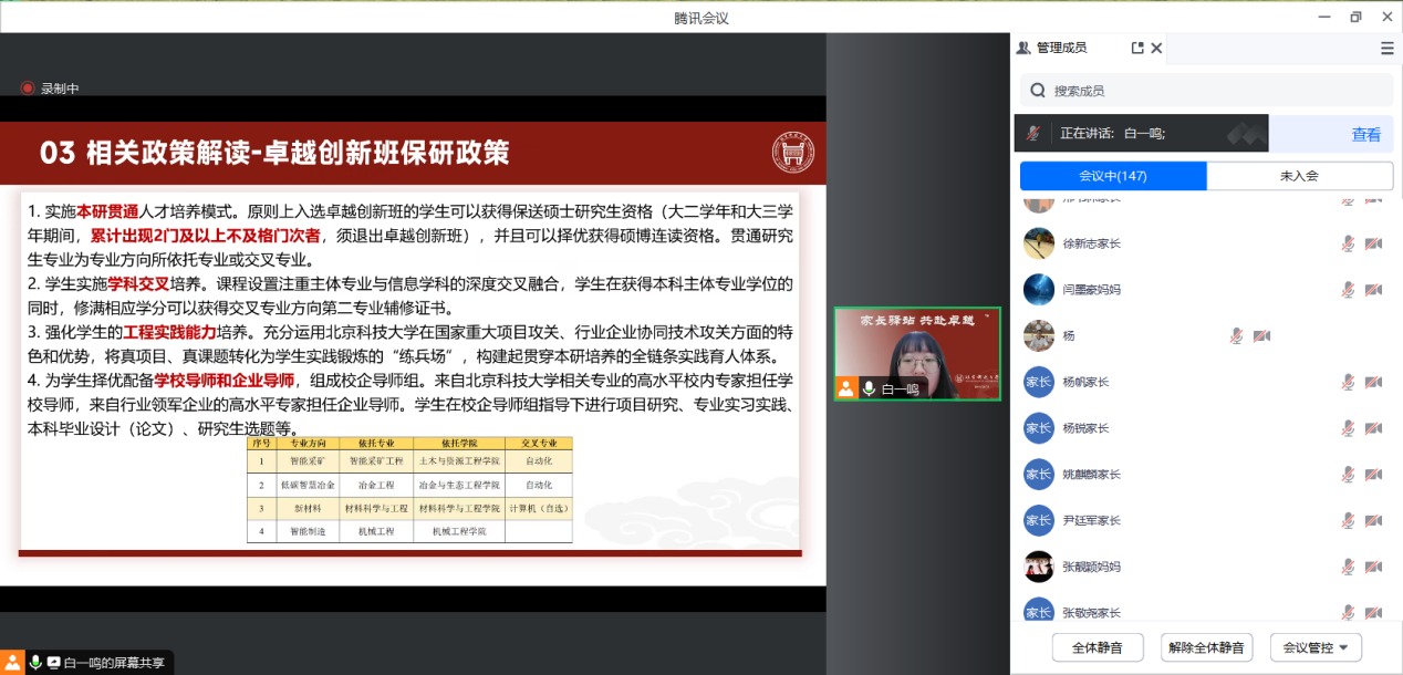本22级辅导员白一鸣围绕卓越工程师培养工作、员工大二学业规划、专业教育等家长们较为关心的内容进行介绍。