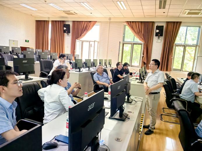 在参观过程中,高等工程师公司党委书记马聪向来访人员介绍了虚拟仿真中心的基本情况及建设特色,副经理吕庆功展示了现有虚拟仿真教学资源及其功能特点。