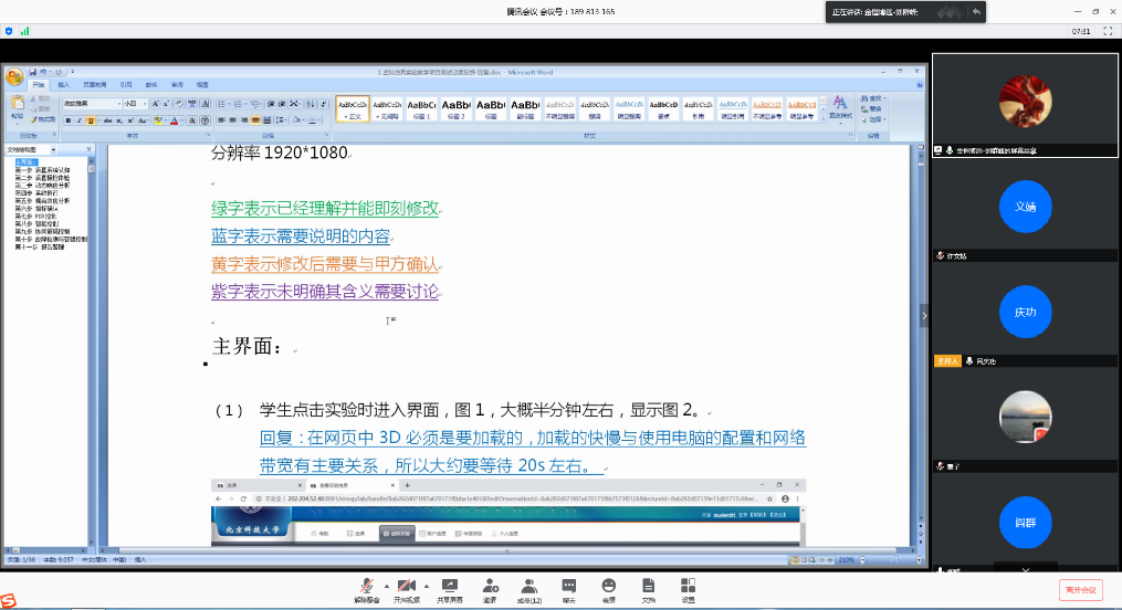 该项目于2020年4月下旬完成第一轮上线,经自动化专业教师试用并提出修改意见后,于5月上旬完成第二轮上线。本次会议主要针对第二轮上线后自动化专业教师和虚拟仿真平台教师提出的100多个问题和意见进行讨论,并对项目下一步实施和教学应用做出了安排。项目负责人李擎对自动化学院专业教师团队、虚拟仿真平台管理团队和公司技术开发团队的艰苦努力和工作成效给予了肯定,希望大家继续努力,尽快完成第三轮上线并实现员工远程登陆学习。自动化学院童朝南教授一直深度参与项目开发工作,学校网络中心在项目网络环境构建中也给予了大力支持。