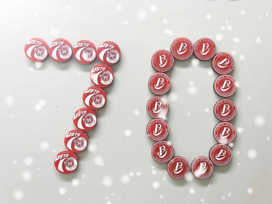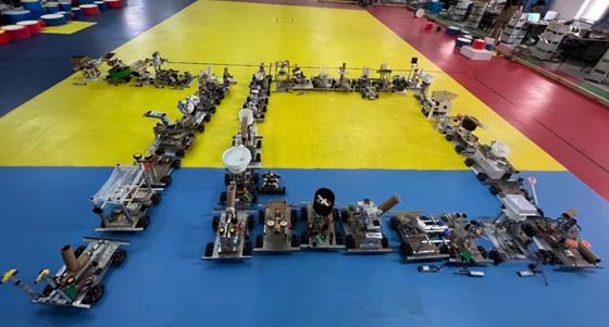 值此建校70年校庆之际,机器人工程实践基地MEI竞技机器人团队以绘制板报,装饰机器人等方式烘托校庆氛围,并通过用机器人组字等独特方式庆祝科大生日。用于组字的机器人全部来自于参加机器人校内赛的同学设计制作,今年的校内赛共有约500名员工参赛为历届之最,体现了公司“学风严谨,崇尚实践”传统,也展示了公司在科创教育普及方面的成果。