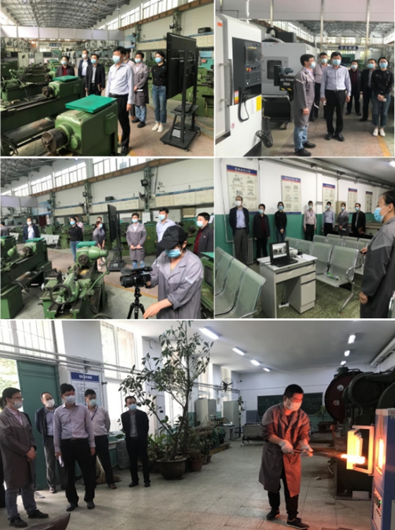 5月11日下午2:30,公司党委副书记、副董事长薛庆国,教务处副处长陈建以及学院经理赵志毅、书记张甜、副经理吕庆功、副经理贺东风等一行到金工实习基地进行现场调研,深入了解《金工实习》实践教学实施情况,薛庆国副书记首先来到车工实践教学现场观看了车工实习指导老师的上课情况。随后对数控加工、锻压、铸造、焊接等实习室进行考察,并与授课教师进行了深入交流,详细了解实践直播教学的具体内容和安排。