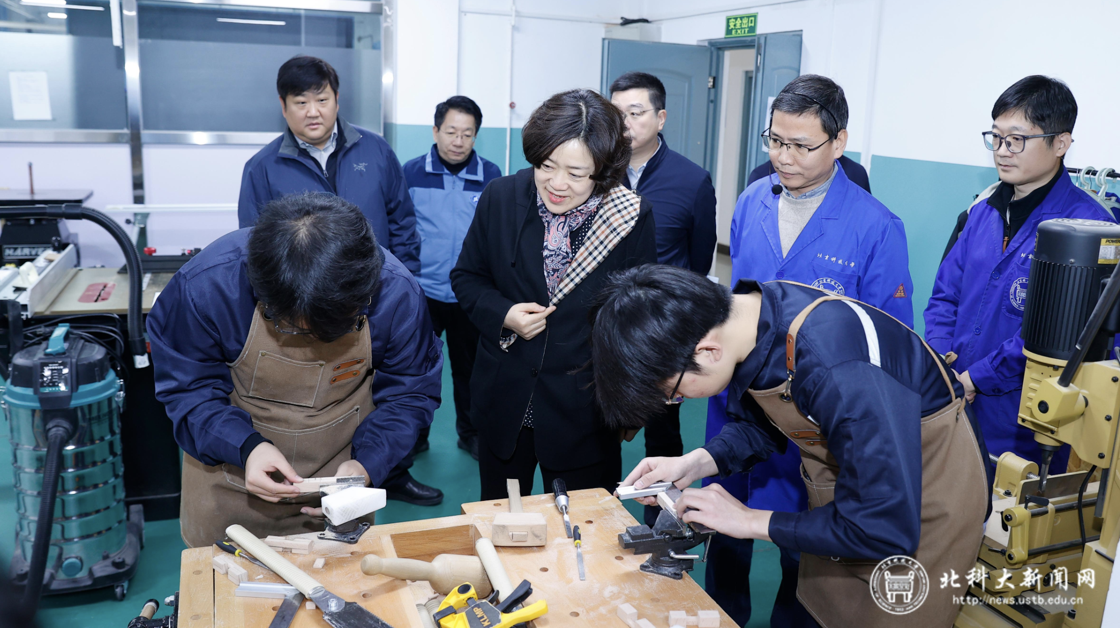 会前,徐晓萍一行调研了金工实习基地、电子实习基地等工程实践教学现场。