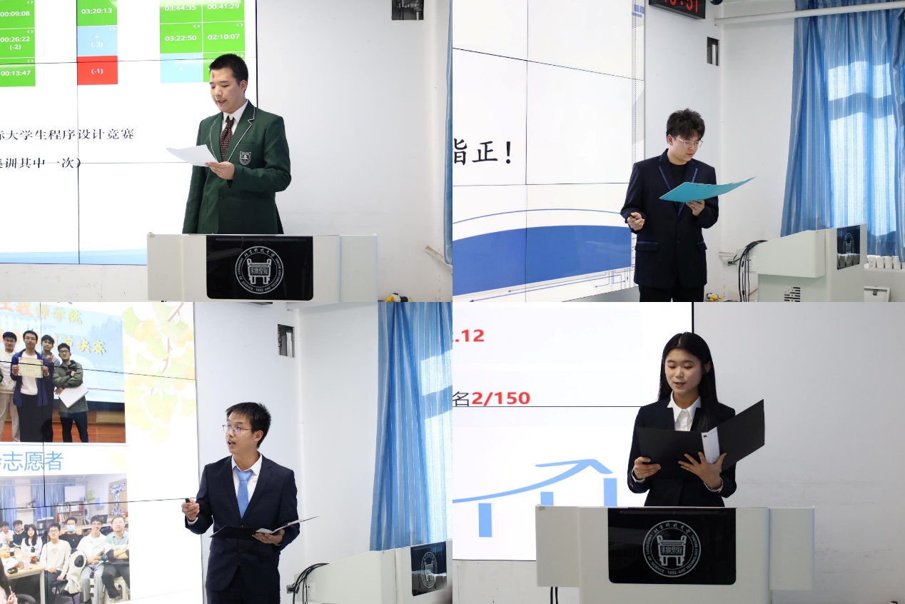答辩环节开始后,答辩选手依次登台,围绕学业成绩、员工工作、科研竞赛、师生互动及日常生活等维度,系统地呈现了上学期的成长轨迹与阶段收获。评委们对答辩内容进行针对性提问、专业点评与建设性指导,在互动中深化育人实效。