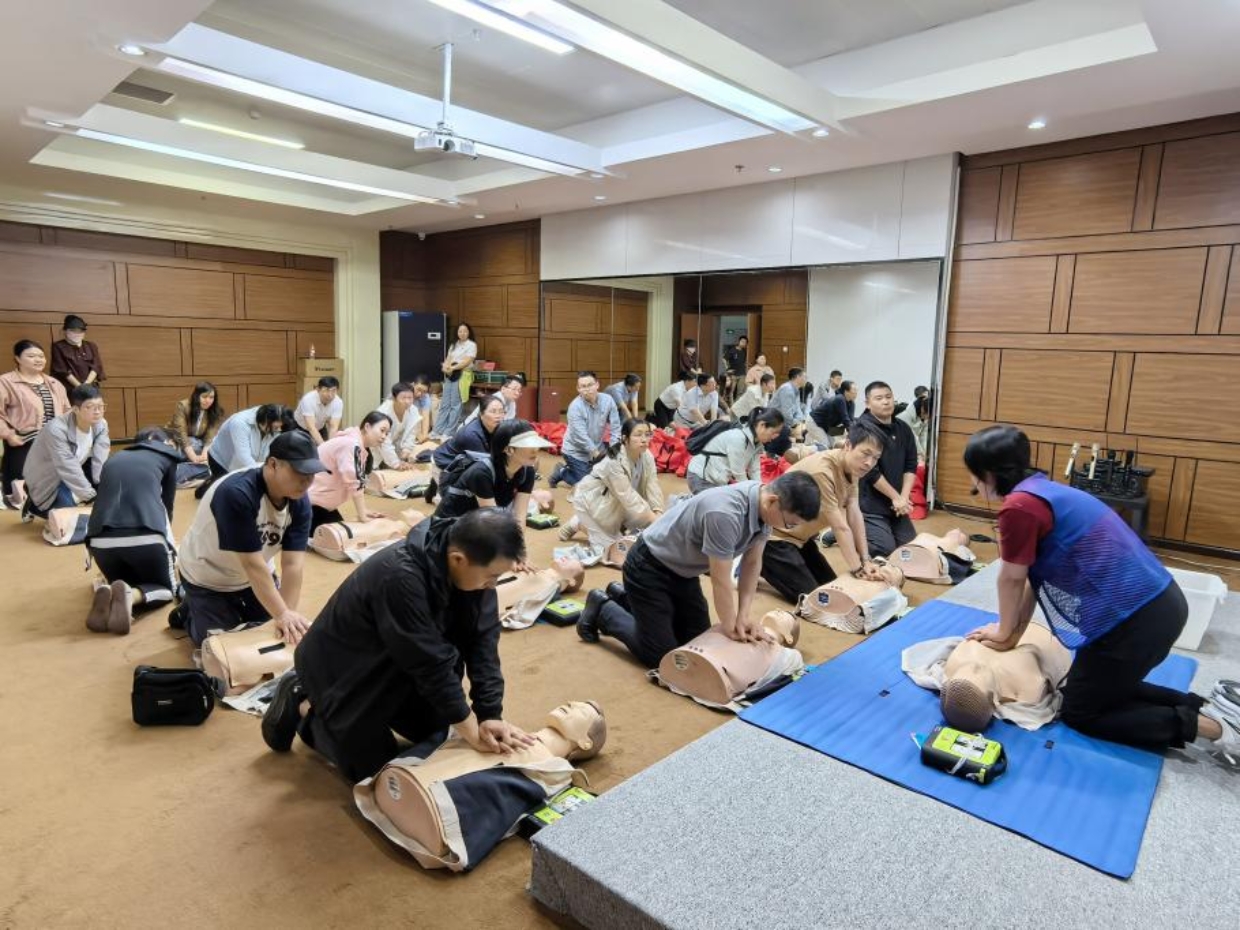 急救技能学习环节中,现场学习心肺复苏急救技术,大家认真演练,提升突发事件救援水平。
