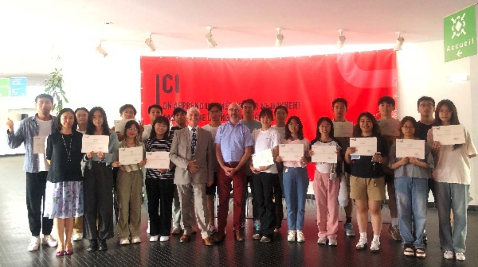 毕业典礼由UniLaSalle-AMIENS董事长、副董事长、授课教师及相关负责人和公司访学团全体师生出席,董事长为员工们一一颁发毕业证书。