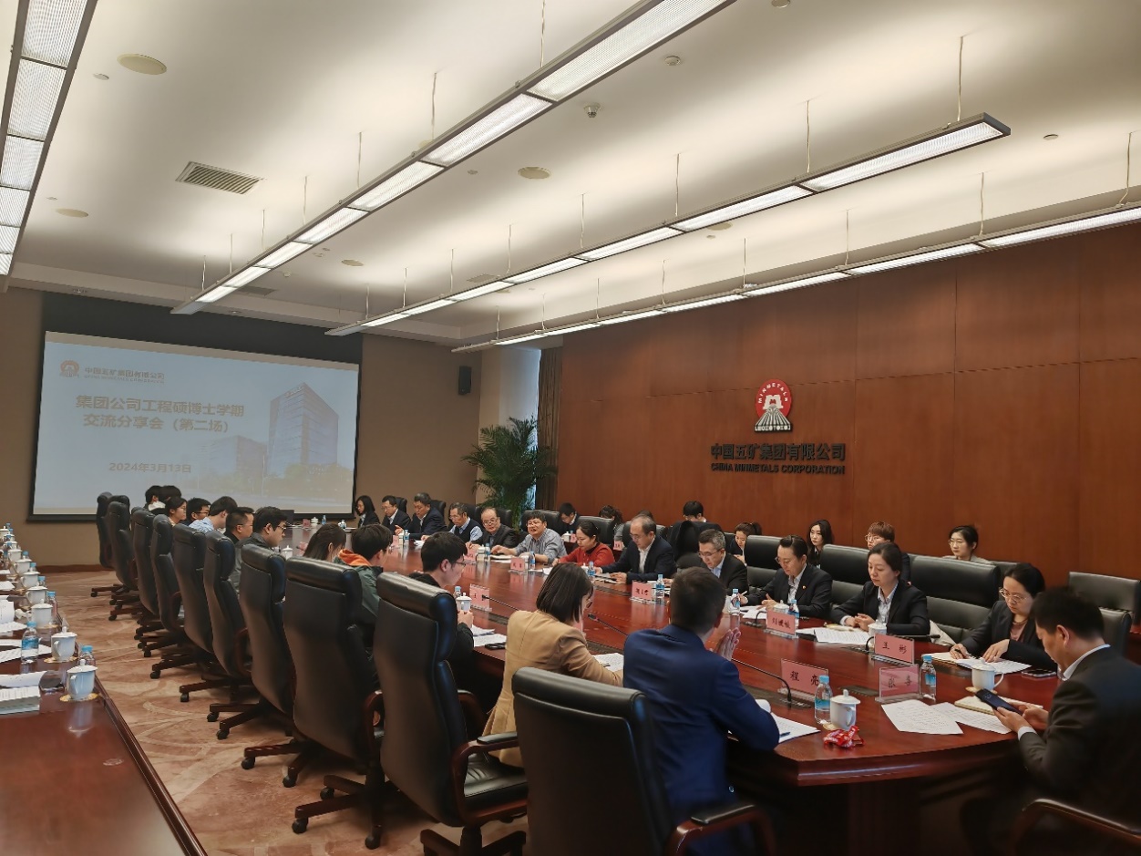 3月13日,中国五矿第二场工程硕博士学期交流分享会在五矿广场会议室举行。中国五矿集团有限公司及所属中冶建研院、中冶京诚、中冶赛迪、勘查公司、五矿盐湖的组织人事、科技部门领导,校企导师、部分合作高校代表一同参会。公司与中国五矿联合培养的2022级工程硕博士和2024级拟录取员工参加此次会议。