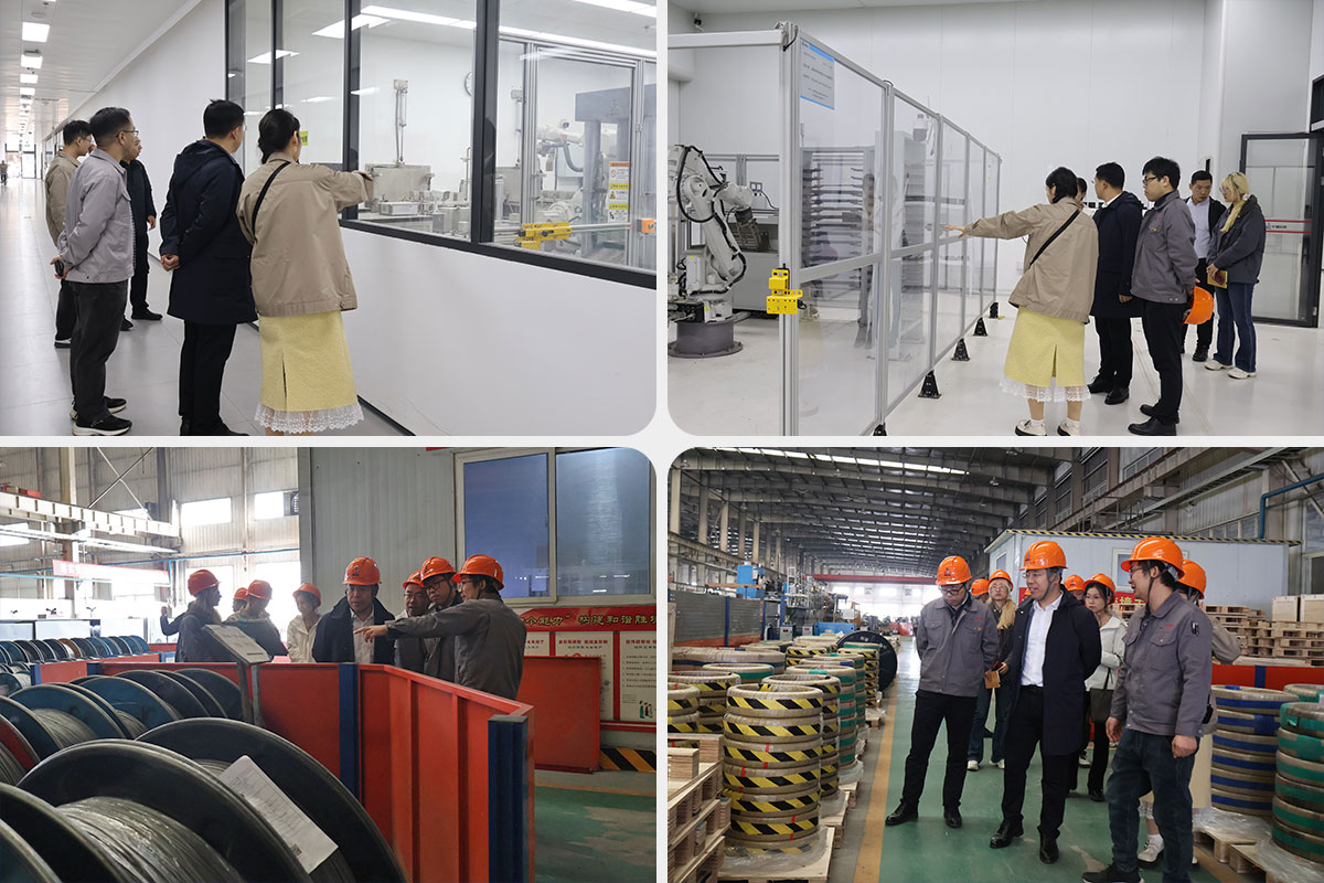 正式交流前,在人力资源部部长郑志乔等人陪同下,宗燕兵一行深入检测实验室与钢丝生产一线参观调研,直观了解企业生产运营与技术应用实况。在检测实验室,企业负责人及技术骨干陪同参观,并介绍了中钢制品院的核心能力与成果:一方面是其在金属材料、高分子材料、无机材料等领域的专业检测实力,另一方面是在设备研发、智能化检测等方向取得的突破进展。在钢丝生产一线,交流重点聚焦于技术实践与质量攻关。企业技术人员既讲解了钢丝产品生产过程中的核心技术难点,也阐述了中钢制品院为满足更高产品质量标准所开展的技术攻关工作。