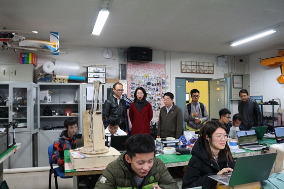 11月7日下午,高等工程师公司党总支书记张甜带队对机器人工程实践基地、电子实习基地和金工实习基地进行了安全检查。本次检查由主管实验室副经理吕庆功、安全秘书徐立业、学院办公室王晶等共同参与,重点就实验室用电、杂物堆放、安全操作、消防设施、规范教学等方面进行了巡查。