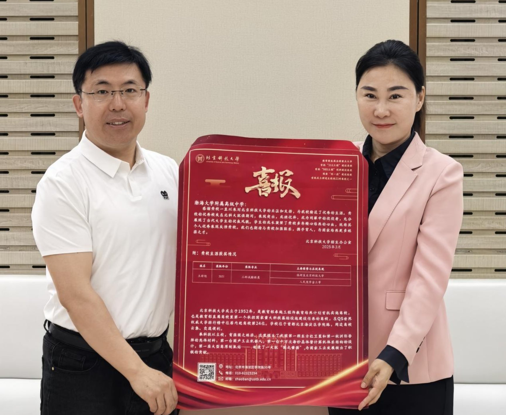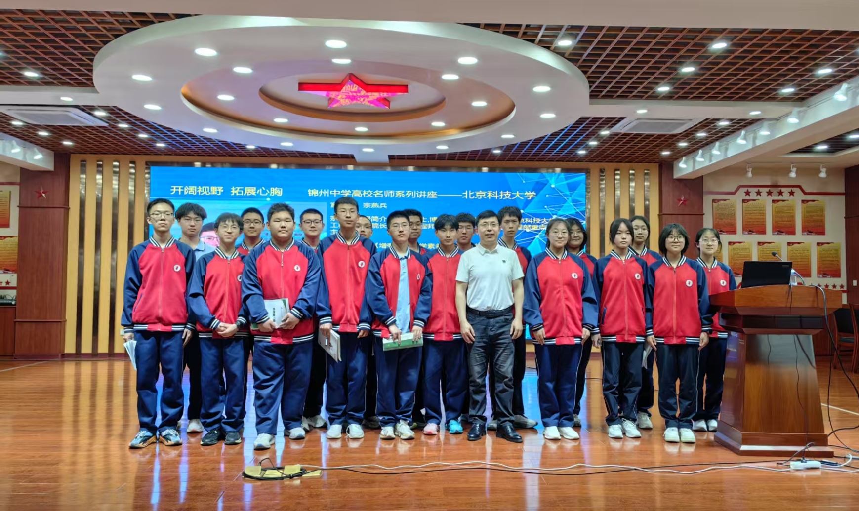 5月22日,北京科技大学williamhill中国官方网站经理、卓越工程师学院执行经理宗燕兵教授受委托带队走访辽宁省渤海大学附属高级中学和锦州中学。送喜报、谈员工、做科普,受到了中学师生的热烈欢迎。