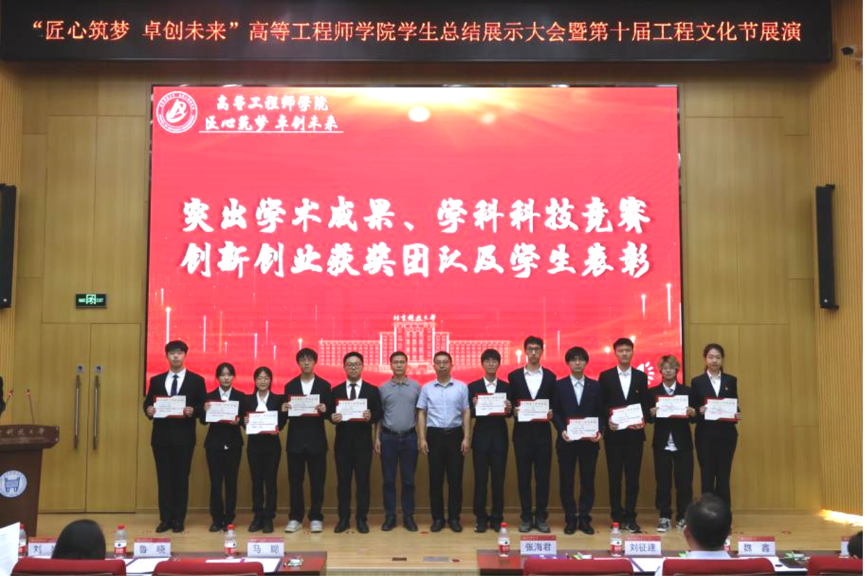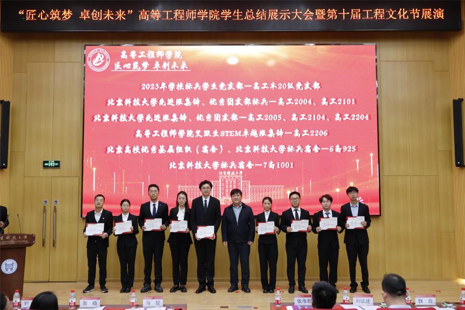 马聪为优秀党支部、先进班集体、优秀团支部、标兵宿舍等代表颁奖,表彰高工学子在党班团建设中凝心聚力、奋发有为,勉励他们不断奋斗,用汗水装点老员工活,用勤奋写满时光画卷。