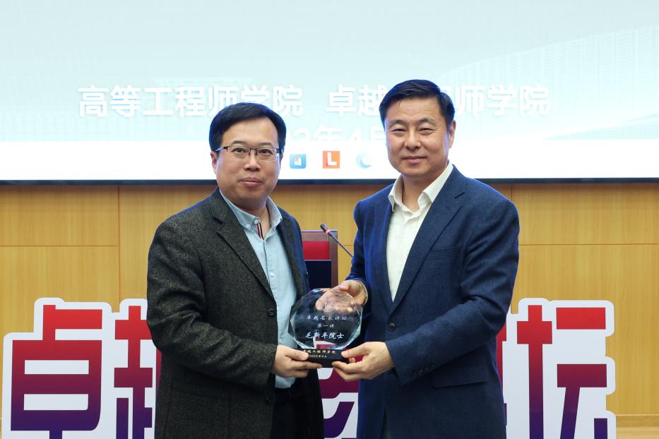 张海君对主讲人毛新平院士进行了详细介绍,并说明了卓越名家讲坛创办情况。苗胜军向毛新平院士赠送卓越名家讲坛纪念牌。