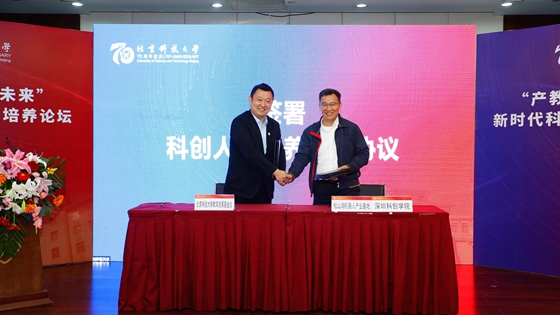 王鲁宁与李泽湘共同签署《科创人才培养合作协议》。科创人才培养需要产业引领和专家指导,李泽湘作为香港科技大学教授、深圳科创学院发起人、松山湖国际机器人产业基地发起人,以二十多年的创新创业教育经验先后帮助员工成功孵化一系列科技创业公司。同时,他多次光临公司参加科技创业和新工科建设研讨交流,为科创教育新模式构建提供引领指导。