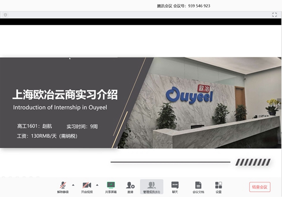 接着,参与艾默生过程控制有限公司实习的张亦悦通过一个短片展示了自己9周的实习生活。艾默生过控公司提供了公用事业部、关断阀部、战略客户与安全生命周期服务部、海外出口及大项目部7个岗位的实习工作。艾默生不仅拥有良好的工作环境,更能让实习的同学获得丰富社交经验。